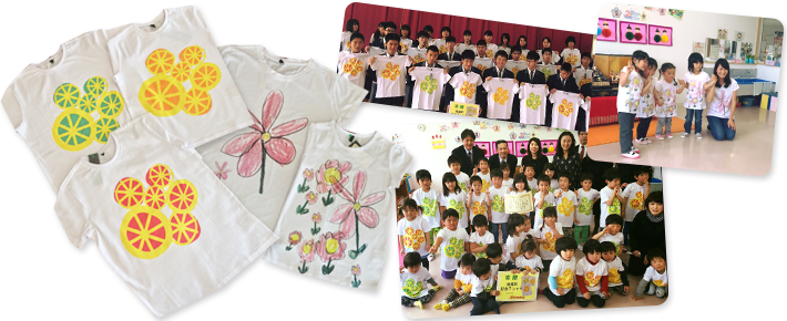 このTシャツは、第2回明日を夢見るドレス絵画コンクールで設けた「docomo×ベネトン賞」の受賞に合わせ、ドコモの東北応援社員募金(※1)の一環で楢葉町の子どもたちに寄贈されたものです。