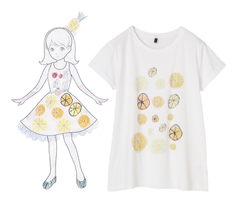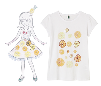 『夢見るオレンジ』宇参 穂乃さん宮城県東松島市立大塩小学校5年<コメント>大好きなオレンジがTシャツにたくさん描かれた模様になってたら素敵だと思ったから。チャリティーTシャツ2,900円(税込)