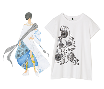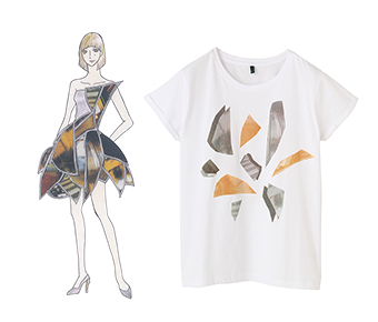 『麗色(れいしょく)』谷本 菜々子さん大阪府咲くやこの花中学校2年<コメント>私はこのドレスに、私がいままで見てきた、生まれ育った地、阿波座の風景を詰め込みました。私が「明日を夢見る」という言葉で初めに思ったのが話し声です。私がみている、通っている道はいつも楽しそうな話し声でいっぱいです。そして、私が通っている時間帯はいつも夕方を過ぎたばかりの電灯が、オレンジ色に光り輝いているときです。なので、私はこのドレスを見てくれた人に、私の代わりになって、フフッと笑ってくれたり、ホッコリしてくれたら嬉しいです。チャリティーTシャツ2,900円(税込)